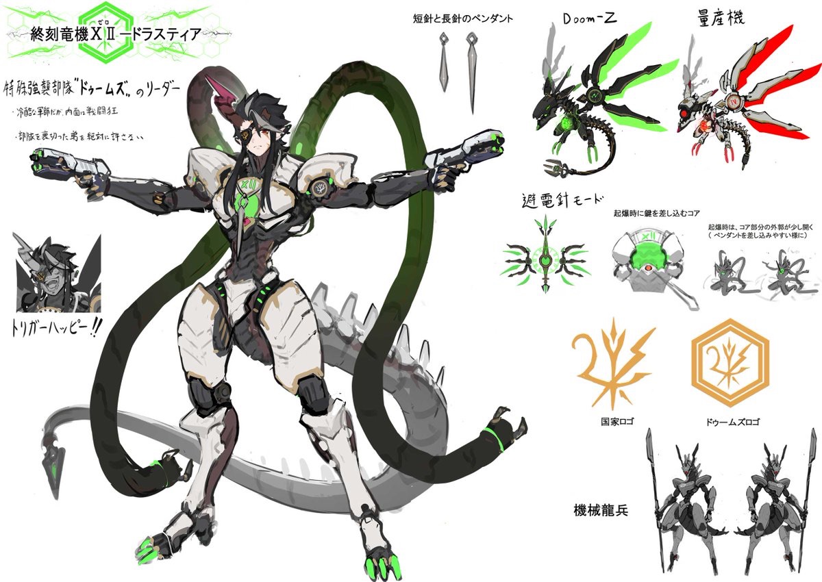 新しい設定画が公開されましたね。今回は『終刻竜機ⅩⅡ-ドラスティア』、『終刻竜機Ⅶ-エララ』、『終刻竜機Ⅴ-アマルテ』。アルトメギアの舞台での新たな敵、【特殊強襲部隊ドゥームズ】のメンバー達ですね。