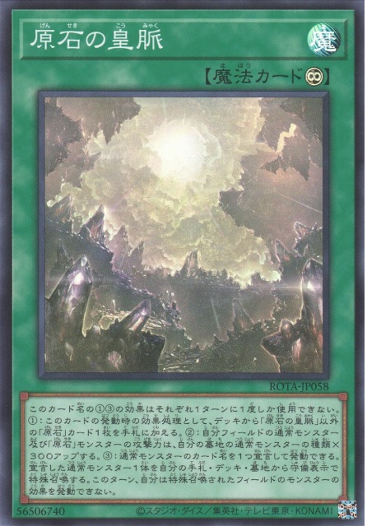 【原石】ギミックの中速戦の強さと【青眼】の制圧能力の高さを組み合わせたデッキ。様々な誘発に対して一定の耐性がある点が優秀なデッキですね。そこに関してはピカイチ。相手のキーカードを『原石の穿光』の除外で吹っ飛ばせる点や手札誘発の枠を他のデッキよりも少し多く採用出来ると中速戦に関しては他の追随を許さないのが偉い。ヤミー相手でも先行を取れれば出てきたモンスターを原石の穿光、威光、天球等着地狩りで吹っ飛ばしていける。最近だと『聖王の粉砕』の採用がデフォルトになっていますね。『原石融合』を取り入れている人もいる。サイドに関しては『竜の精神』や『スキルドレイン』の採用も増えていますね。